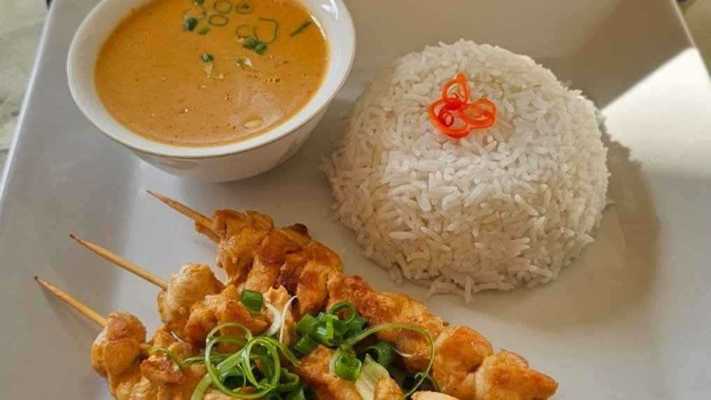 Satay Chicken with plain rice