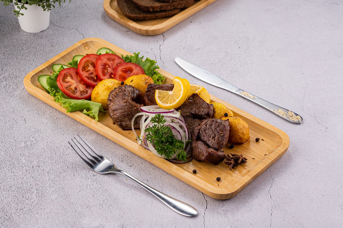 600гр говяжье мясо, картошка, лук, помидор, огурцы, лимон,
