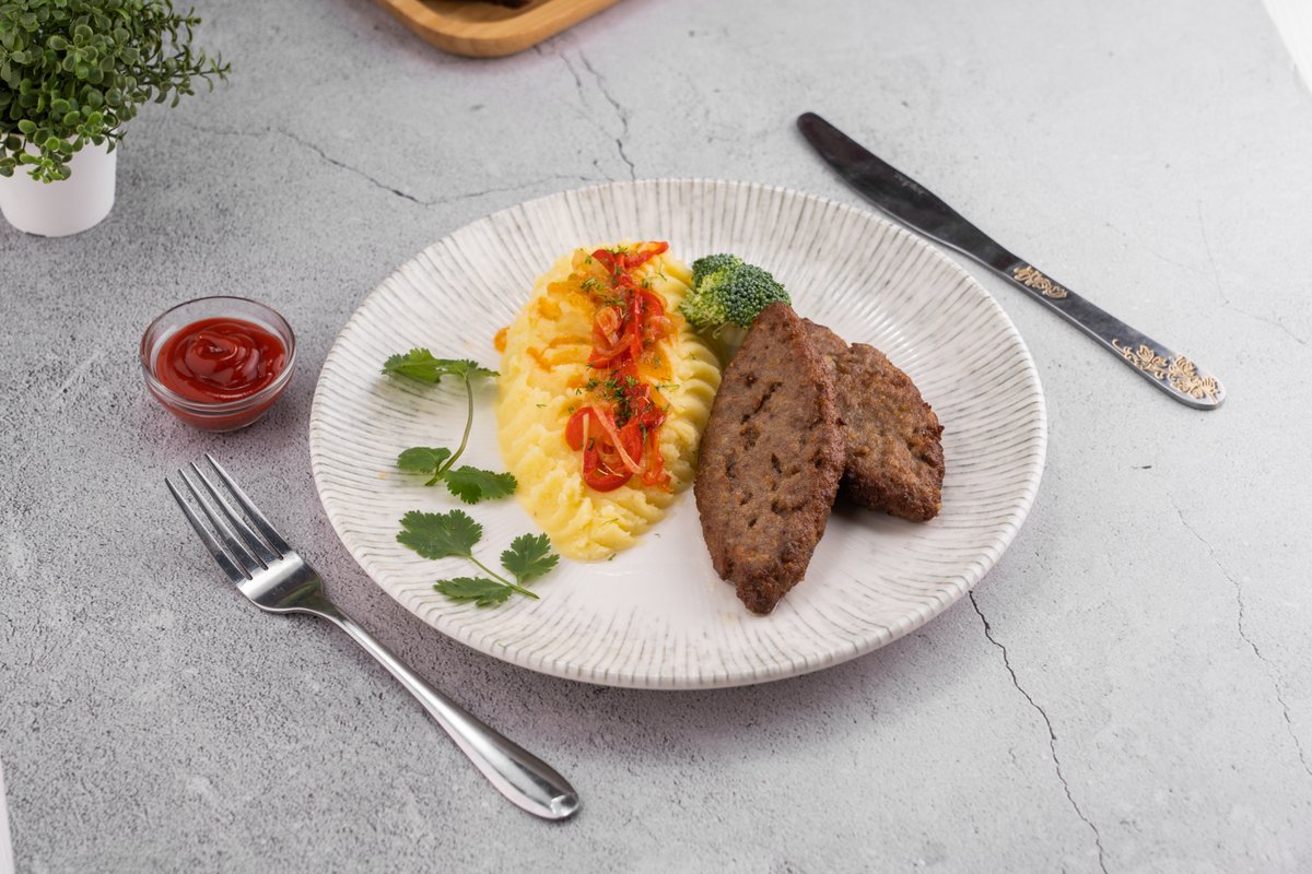 450гр говяжье мясо , пюре кетчуп