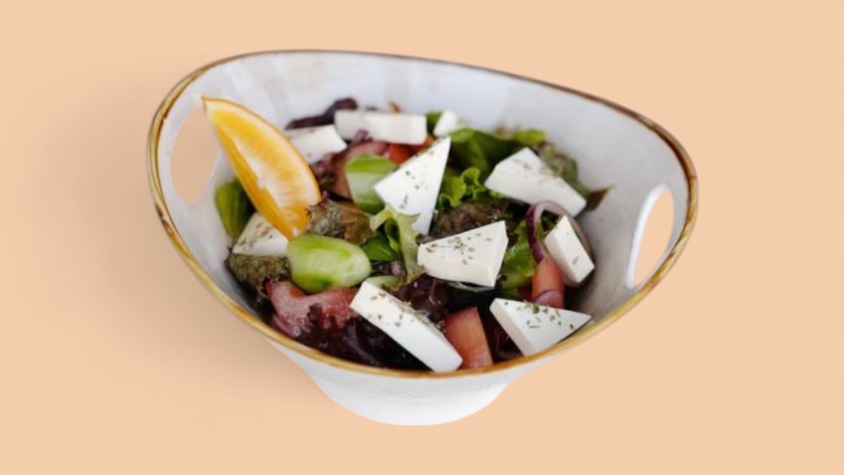 Сыр фетакса, болгарский перец, помидор, оливки, микс салат