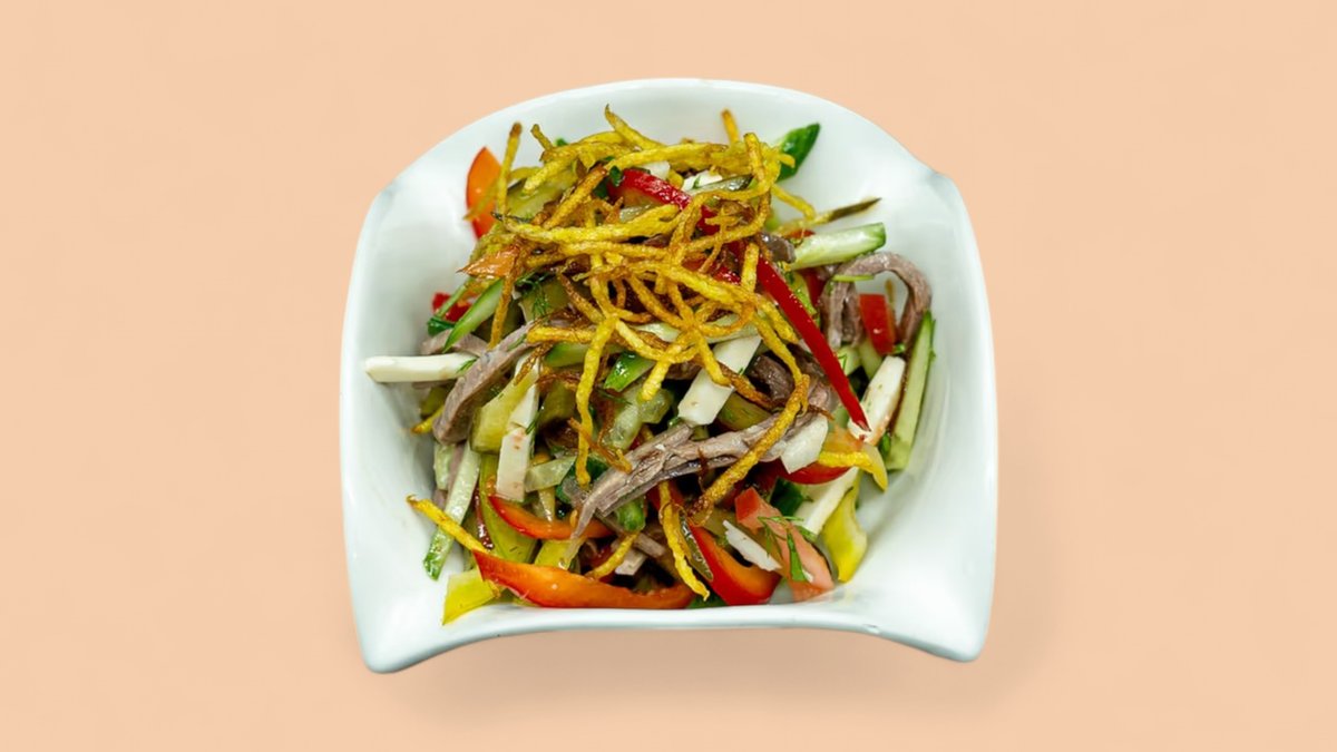 Говядина, огурец, помидор, брынза, картофель пай, зелень