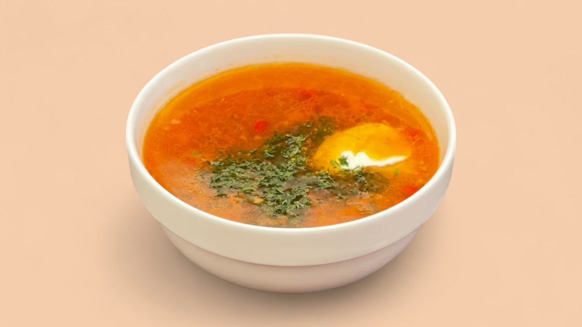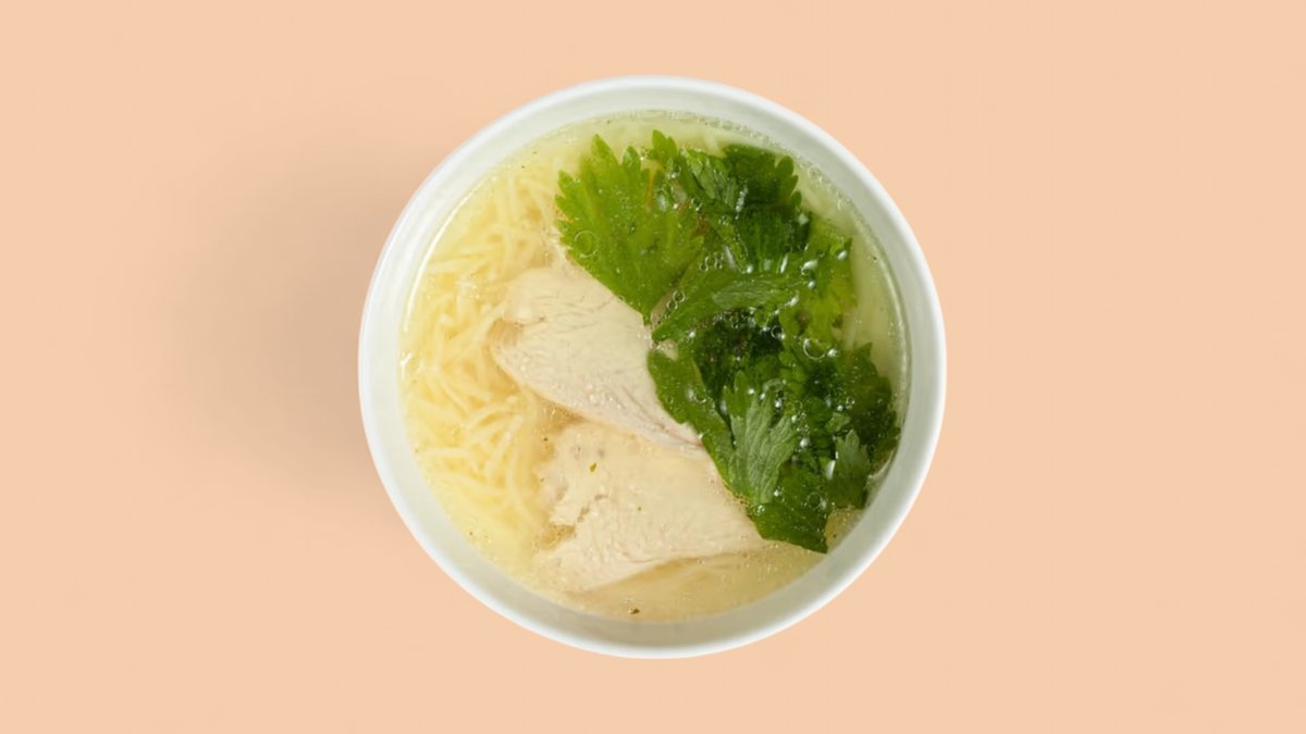 Куриное мясо, лапша, зелень, бульон