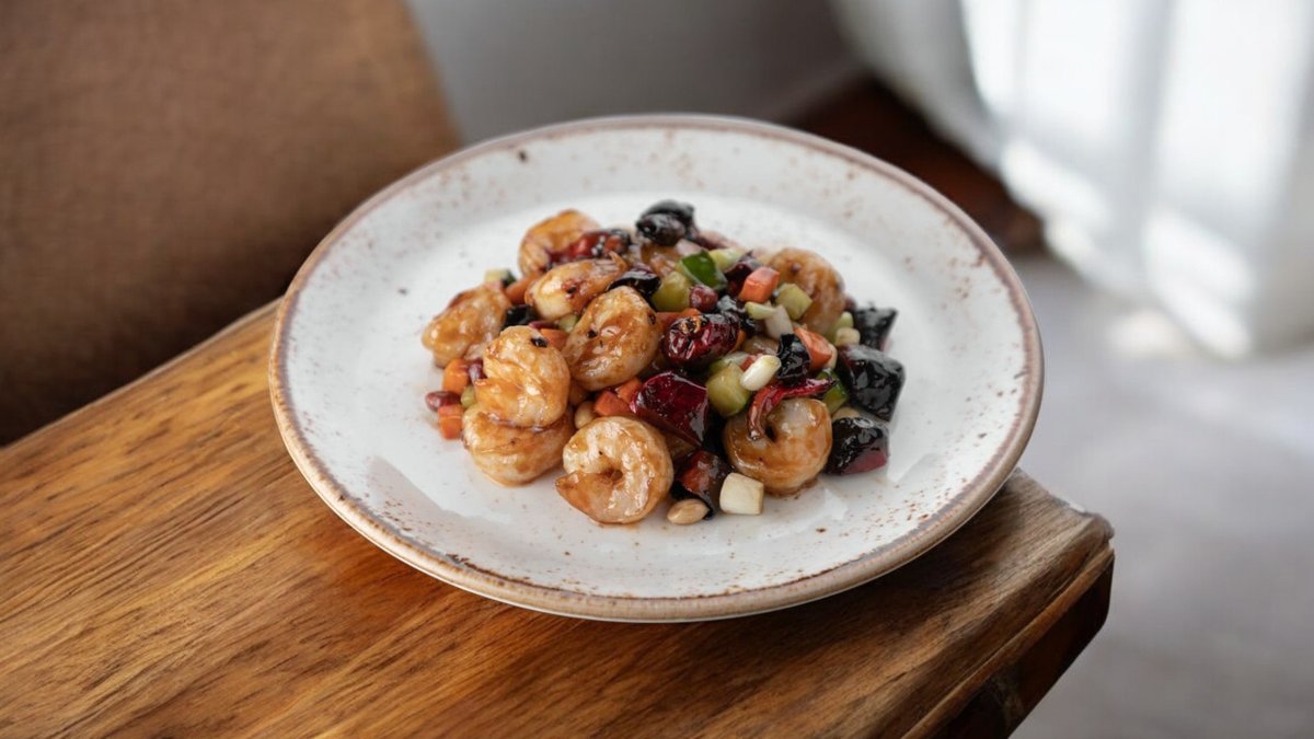 Креветки Гунбао с арахисом (сладко-кисло-острый)