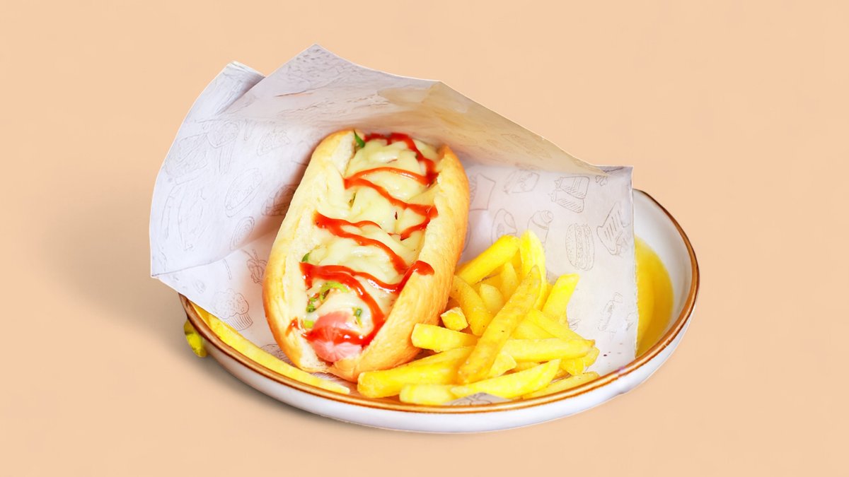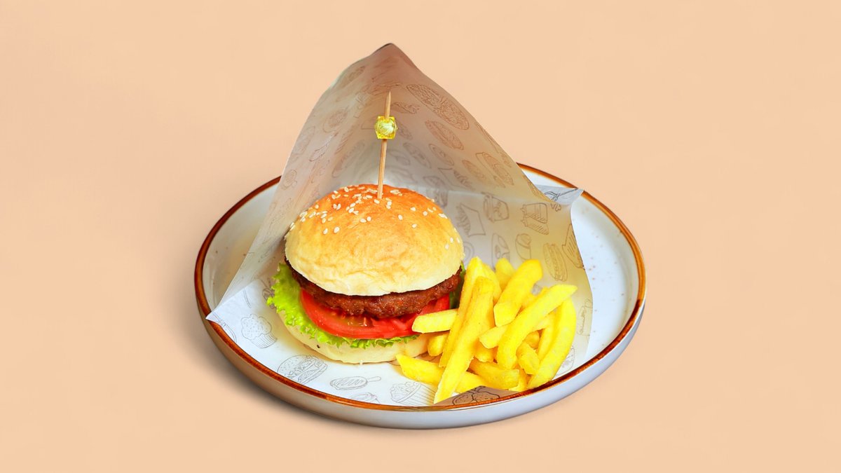 Говяжья котлета с сыром гауда, кетчуп, на выбор рис или пюре