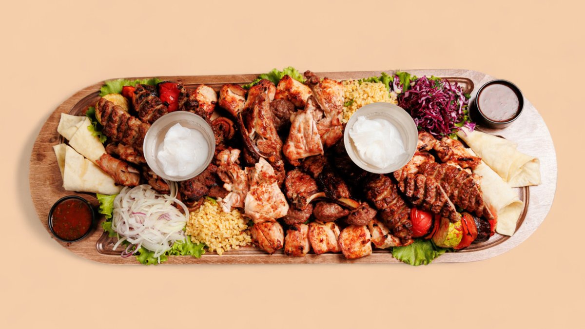 Рибай стейк 1кг , колбаски говяжие и куриные 400гр Бон медалоны 200гр , куриные крыля BBQ 700гр . Куриный стейк 200гр,Овощи гриль, рис, картофельные дольки баранина качалка, лосось стейк