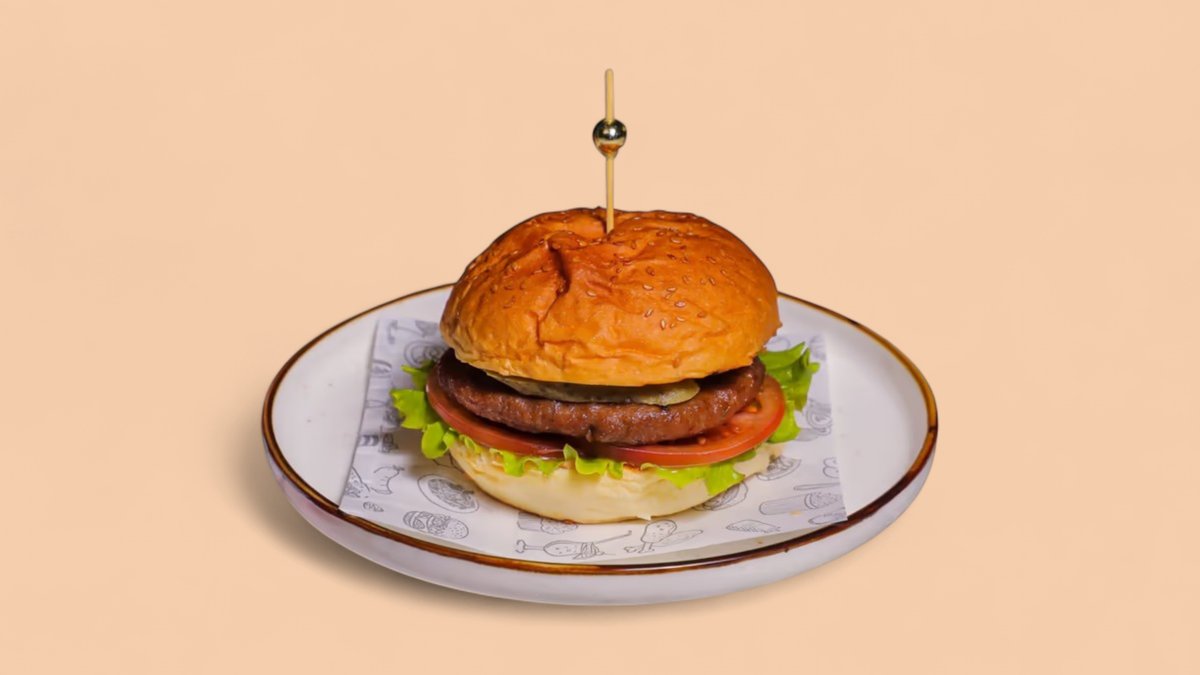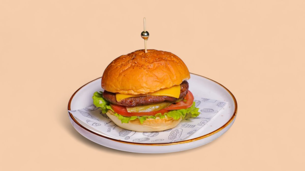 Чизбургер - сыр моцарелла, хлеб на бургер, кетчуп, майонез, латук, маринованные огурцы, котлеты на бургер, помидор