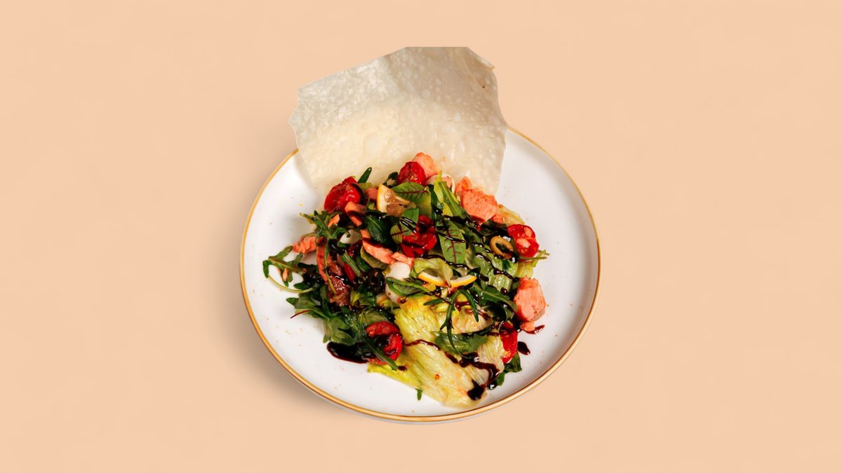 300гр - Черри помидоры, айсберг, яйцо, креветки,