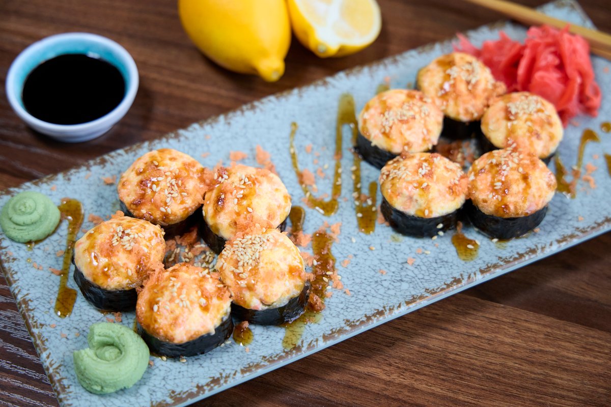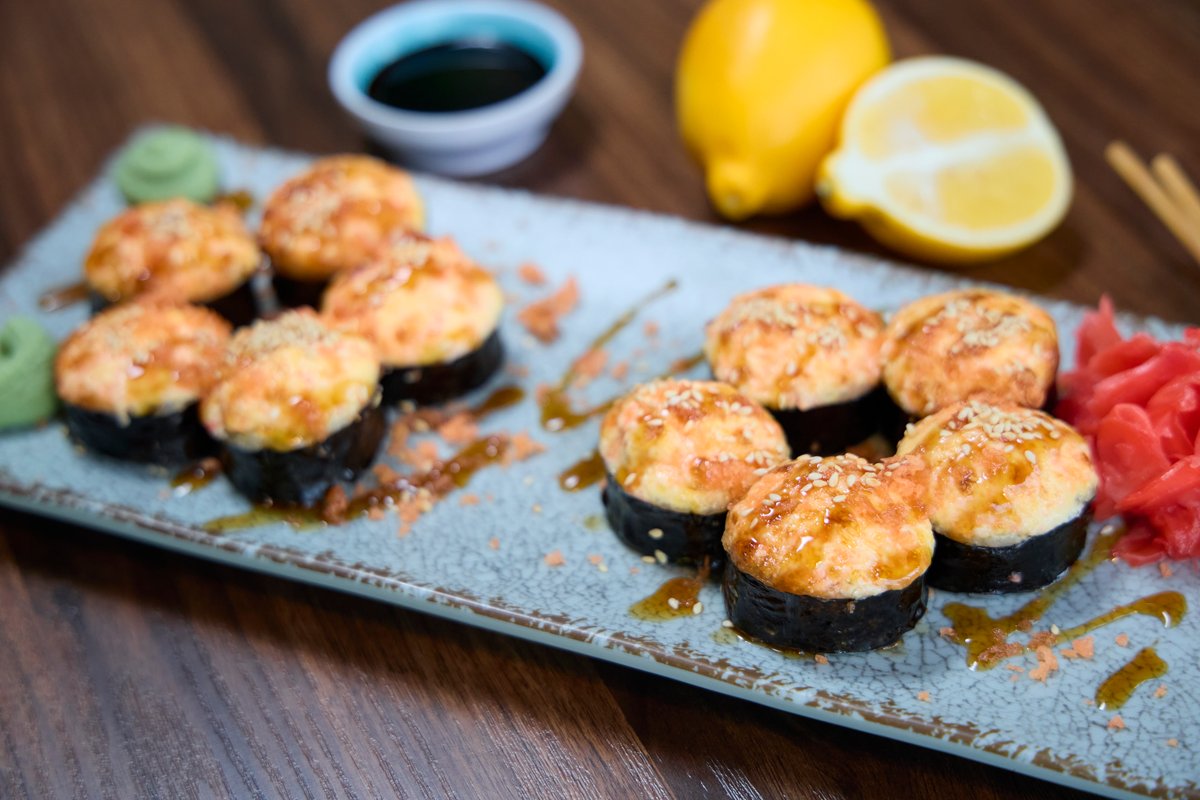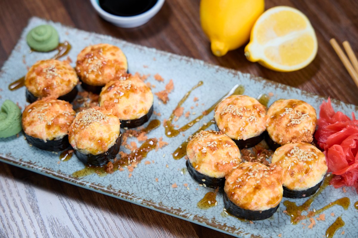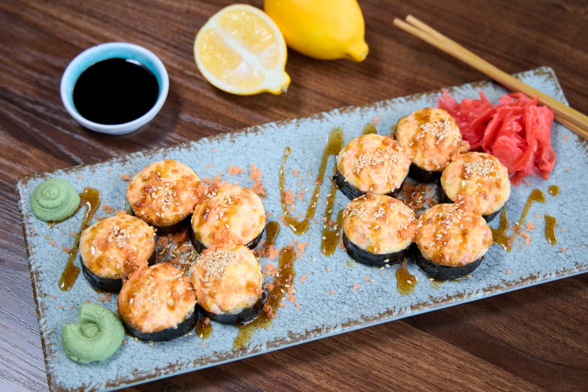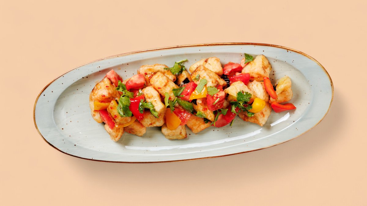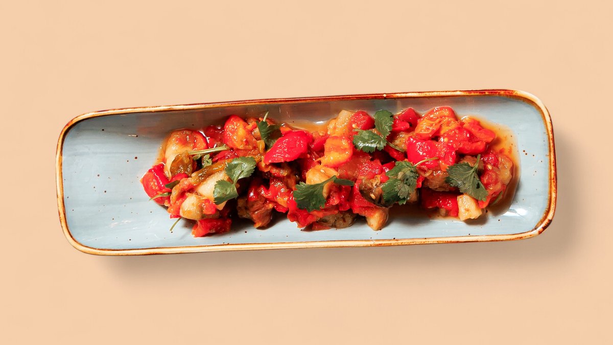 Хрустящий баклажан - баклажан, помидор, соус, зелень