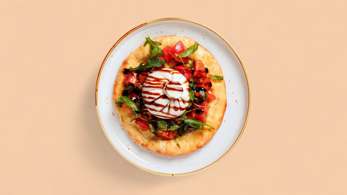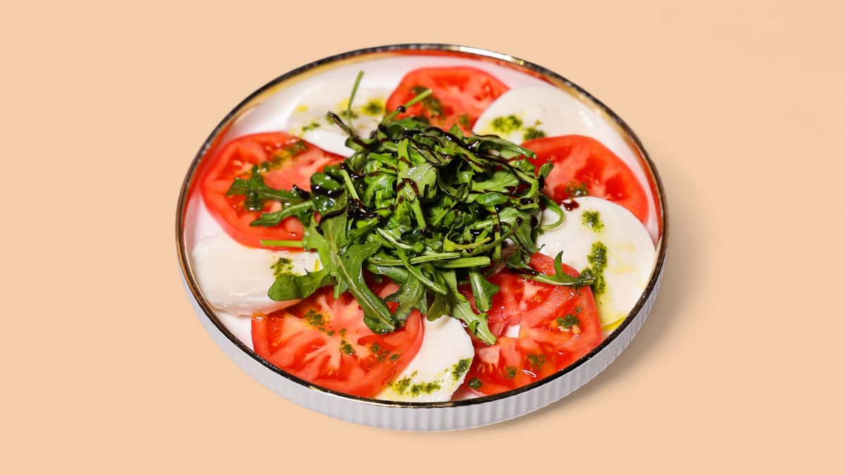 260гр - Буррата,помидоры,песто соус,руккола,балзамический крем