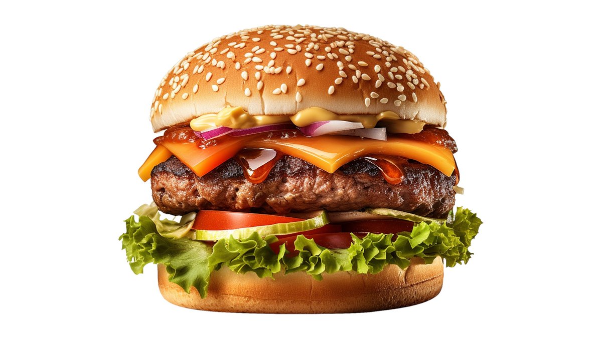 Yumshoq bulochka, 2 dona mol go’shti kotlet, salat bargi, pamidor, bodring, 2 dona sir, maxsus sous, ketchup, moyanez