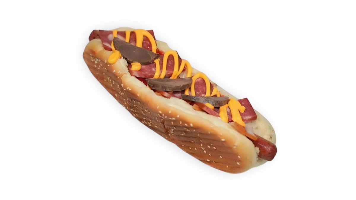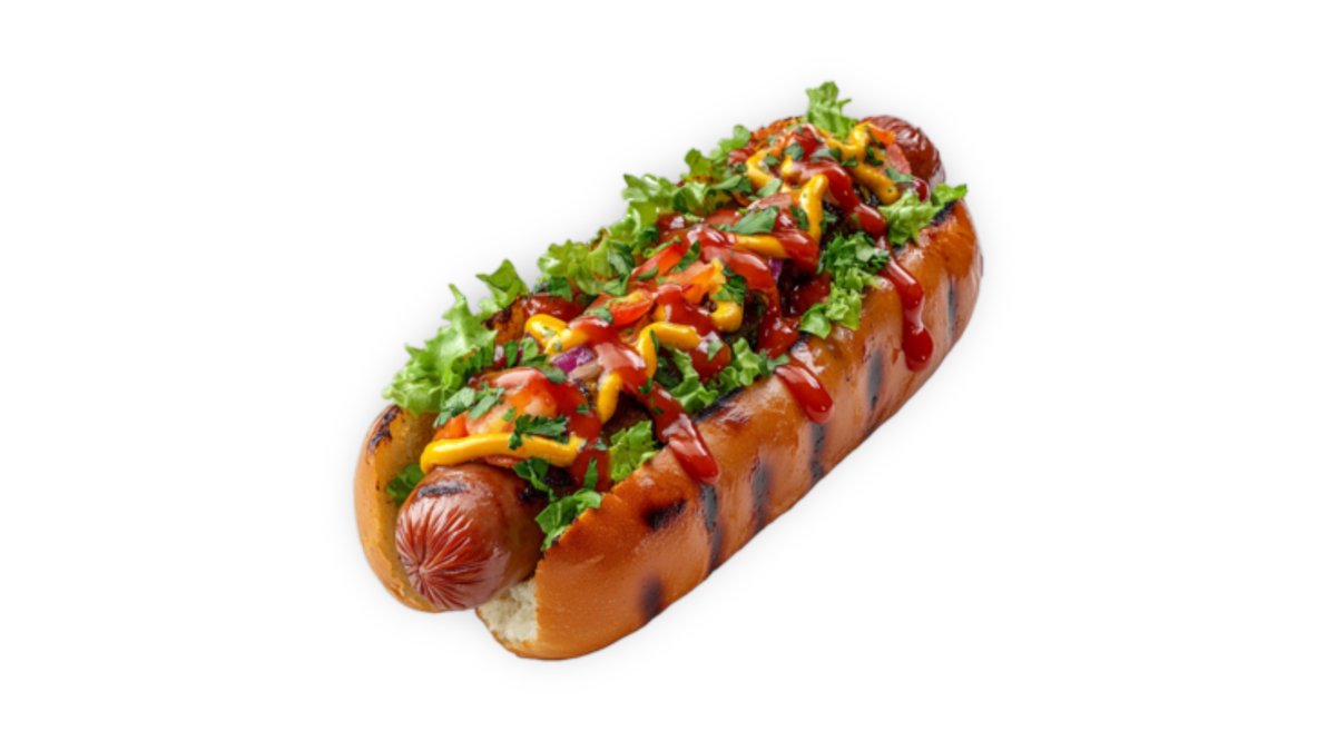 2 dona sosiska, Yangi Bodring, Yangi Pamidor, Moyanez, Ketchup.