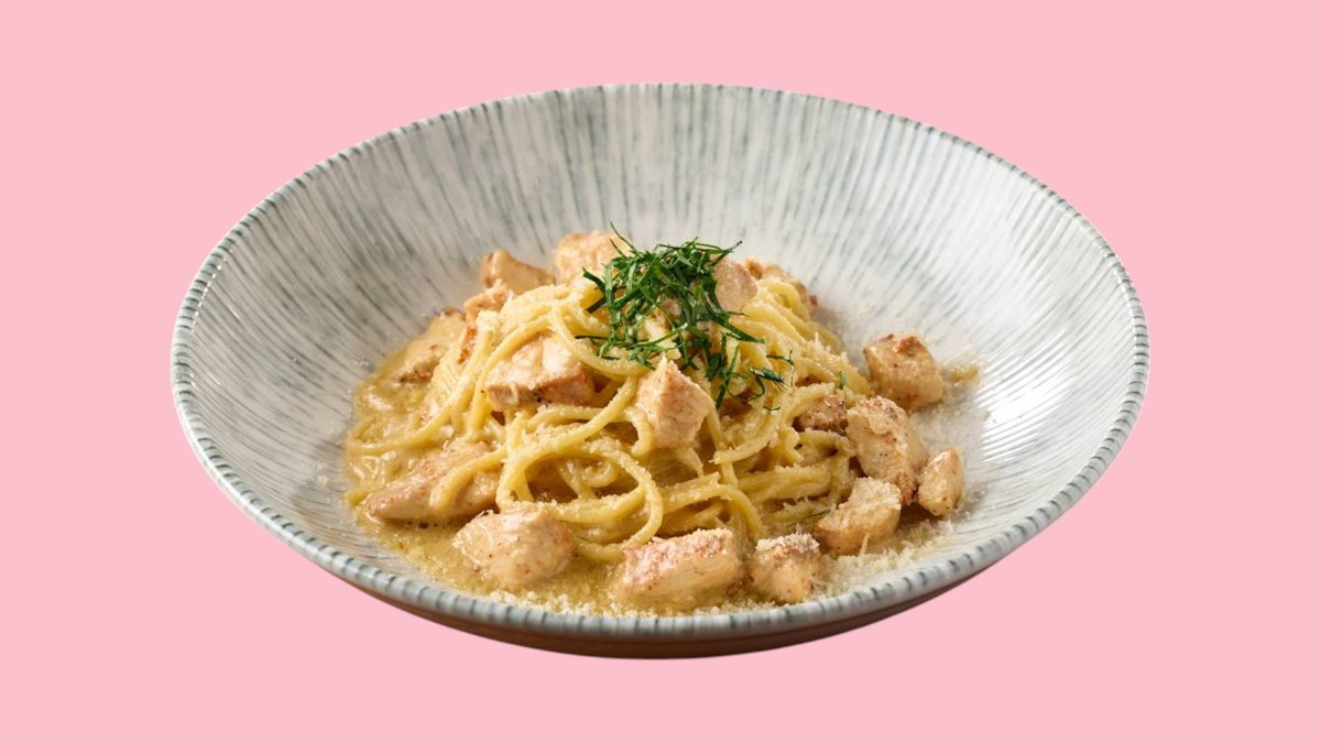 Спагетти, курица, сливки, пармезан.