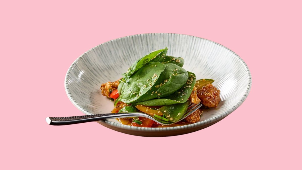 Курица, шпинат, соус.