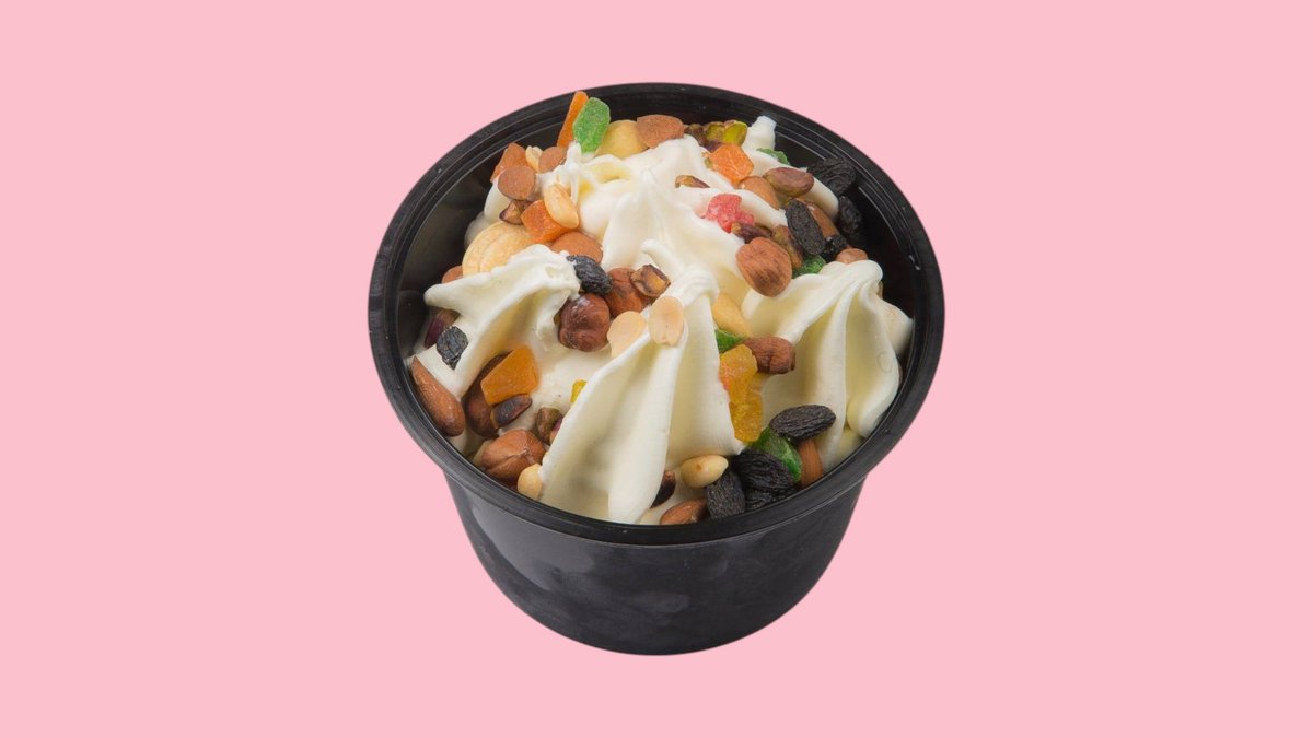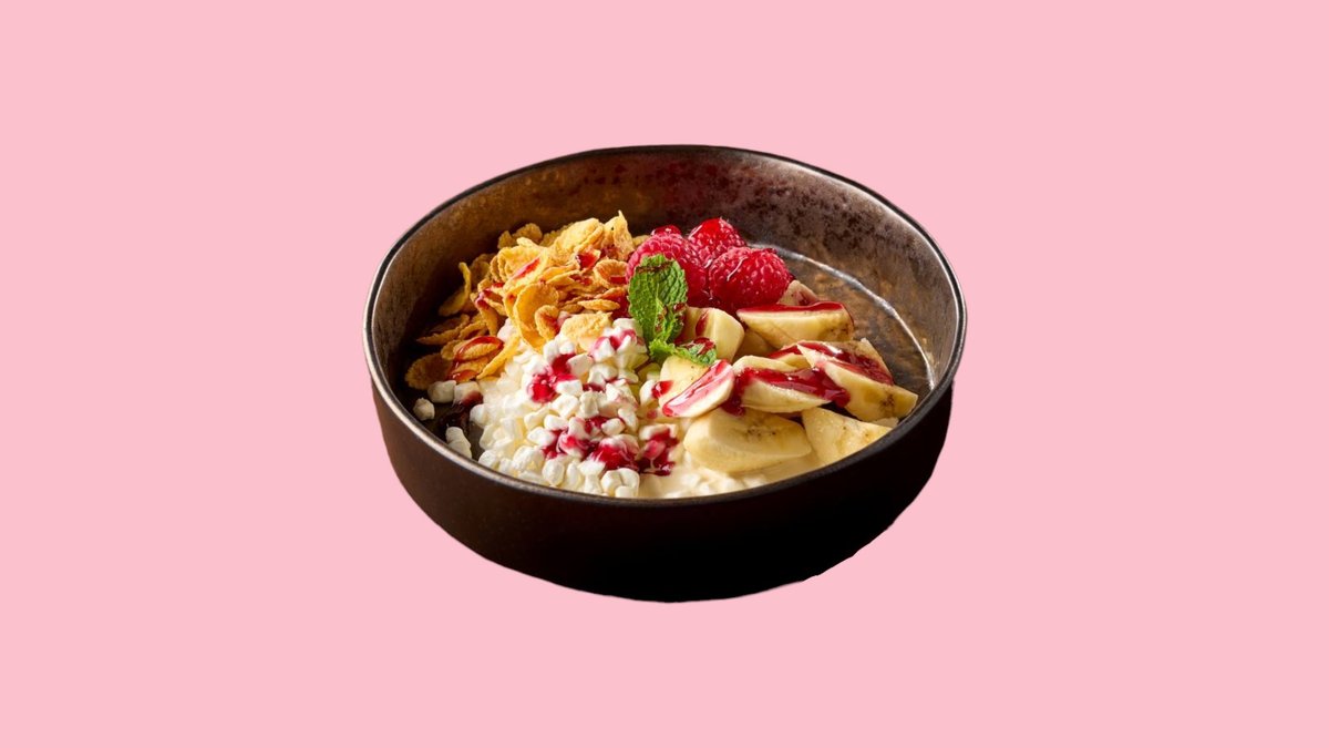 Сметана, банан, орехи, ягоды.