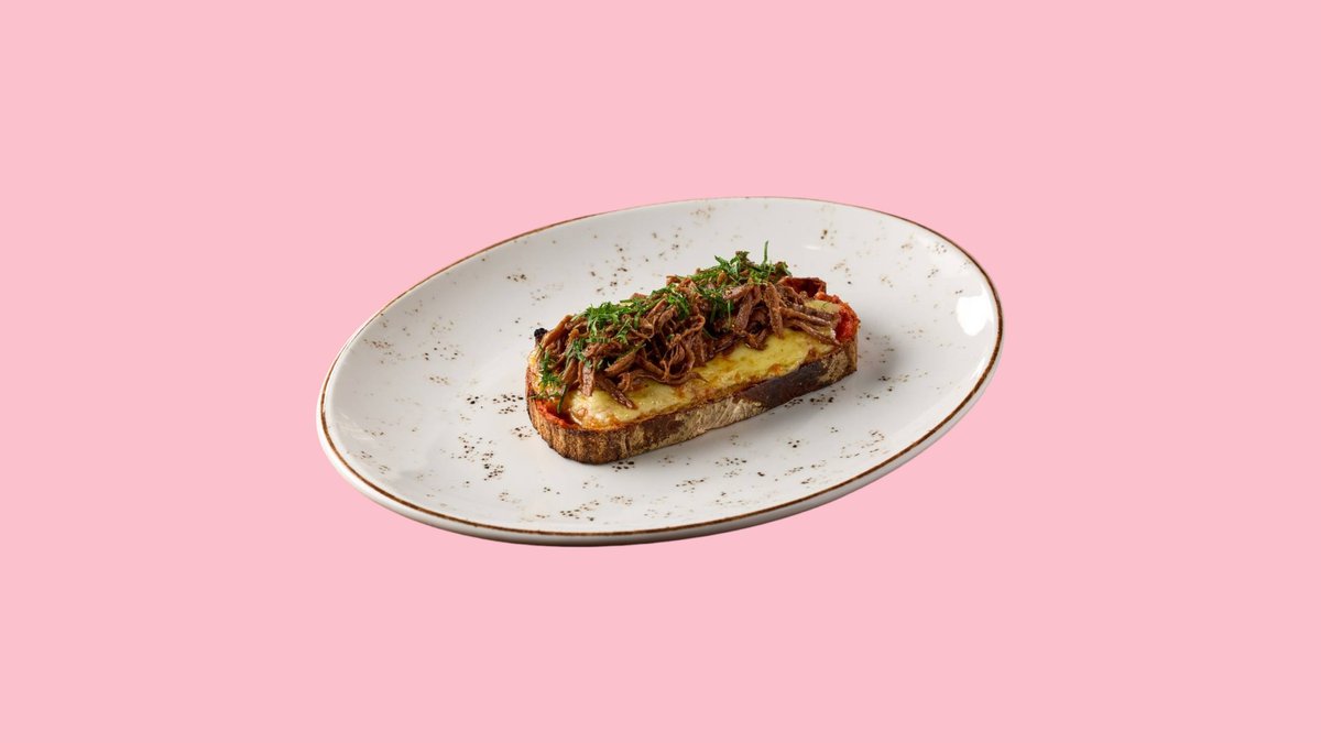 Тост с томлёным мясом.