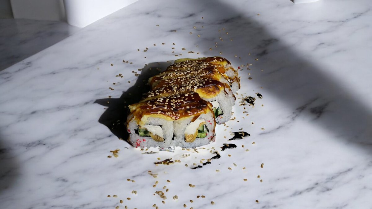 Тамаго Угорь Унаги соус Огурец Сливочный сыр Кунжут