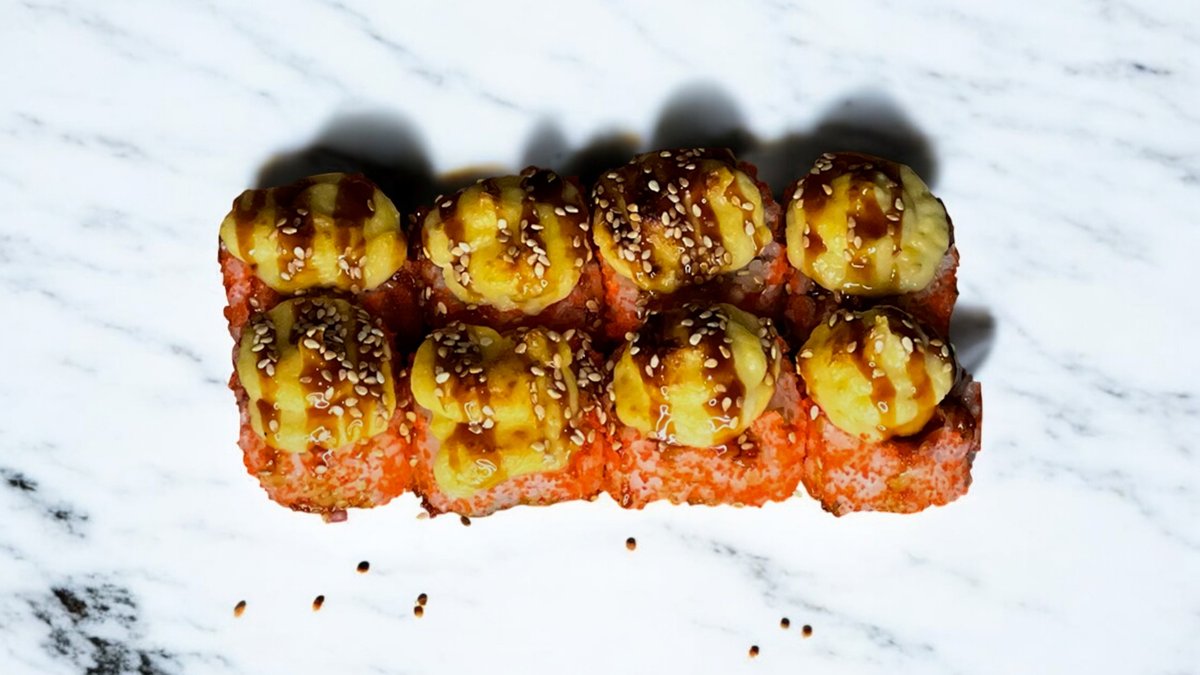 Икра масаго Помидор Огурец Соус Унаги Кунжут Сливочный сыр Сыр шапочки