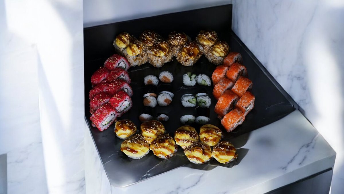 Филадельфия тунец Тамаго маки Угорь хот Торнадо хот