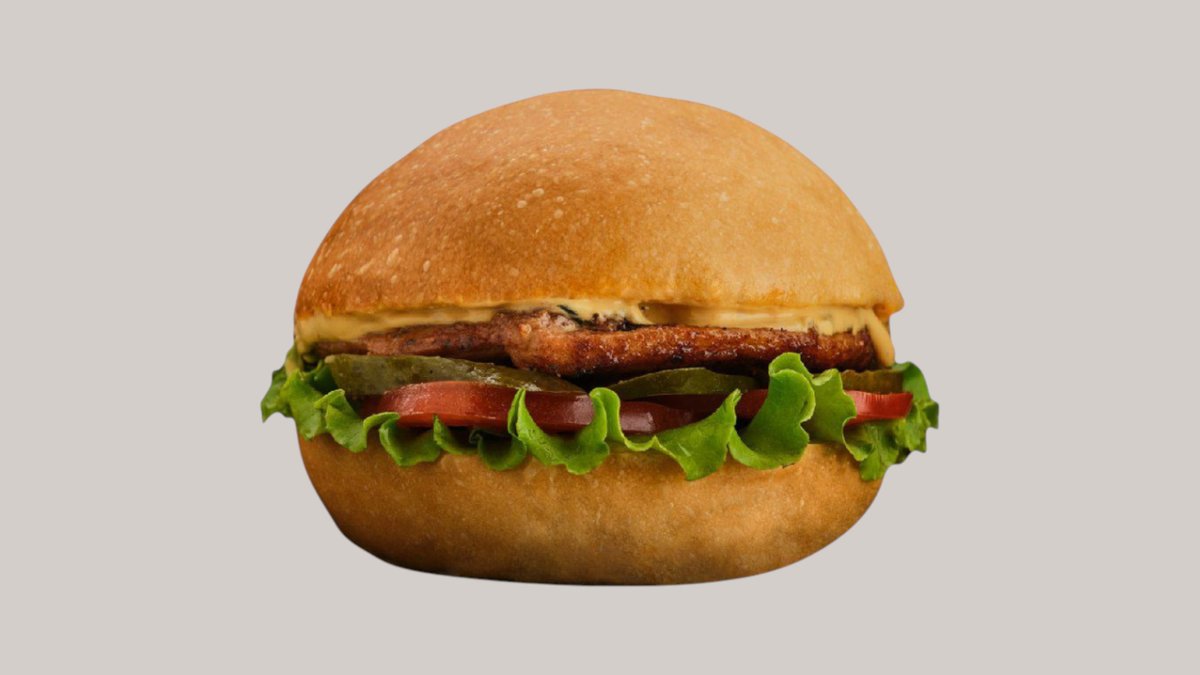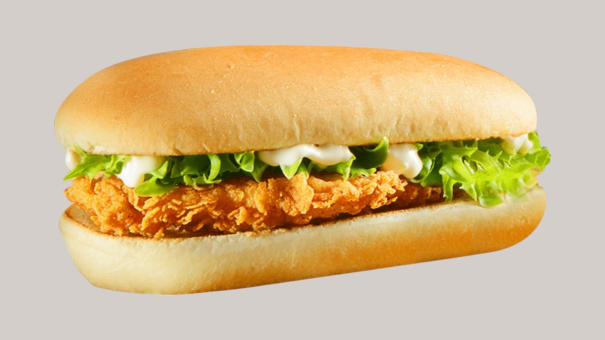 Хрустящая булочка, белый соус,салатный лист айсберг, помидор,хрустящая курочка кфс,кетчуп и майонез.