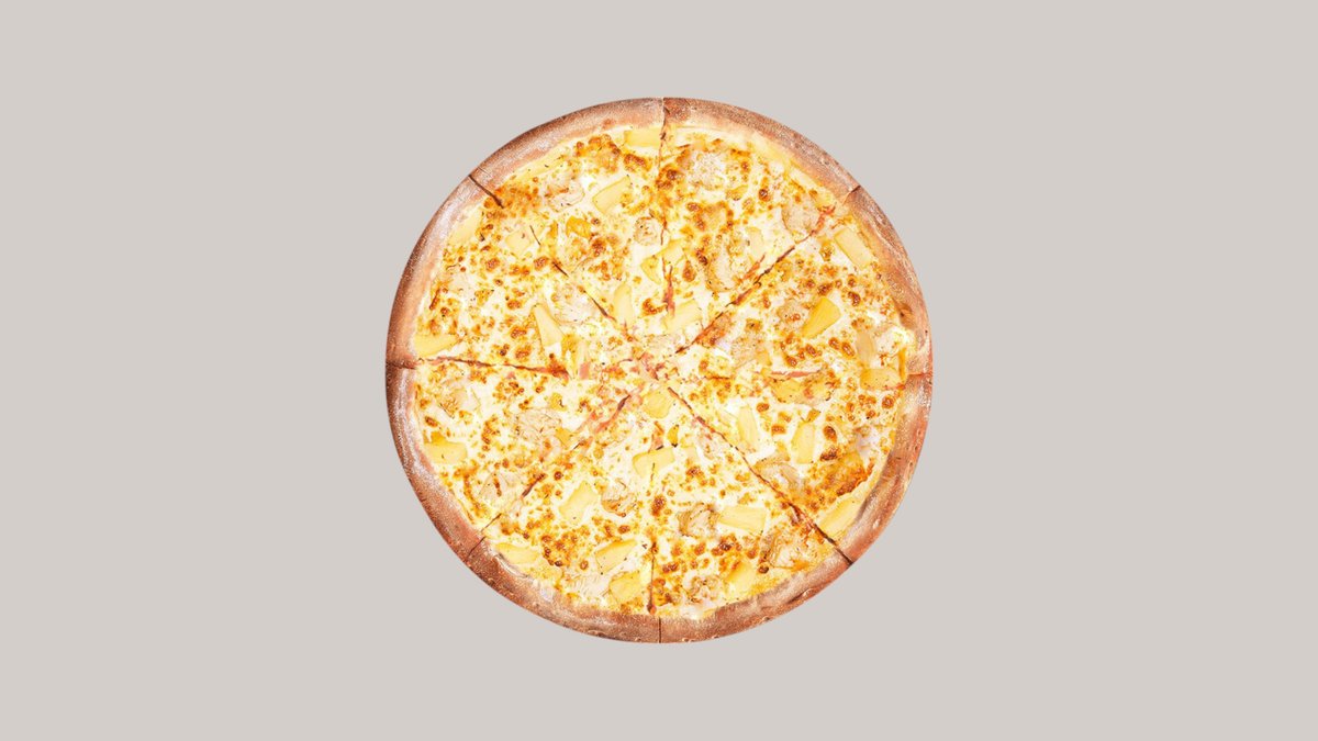 Тонкое тесто,фирменный соус альфредо,сыр моцарелла,помидоры, грибы шампиньоны,куриное филе обжаренная на барбекю