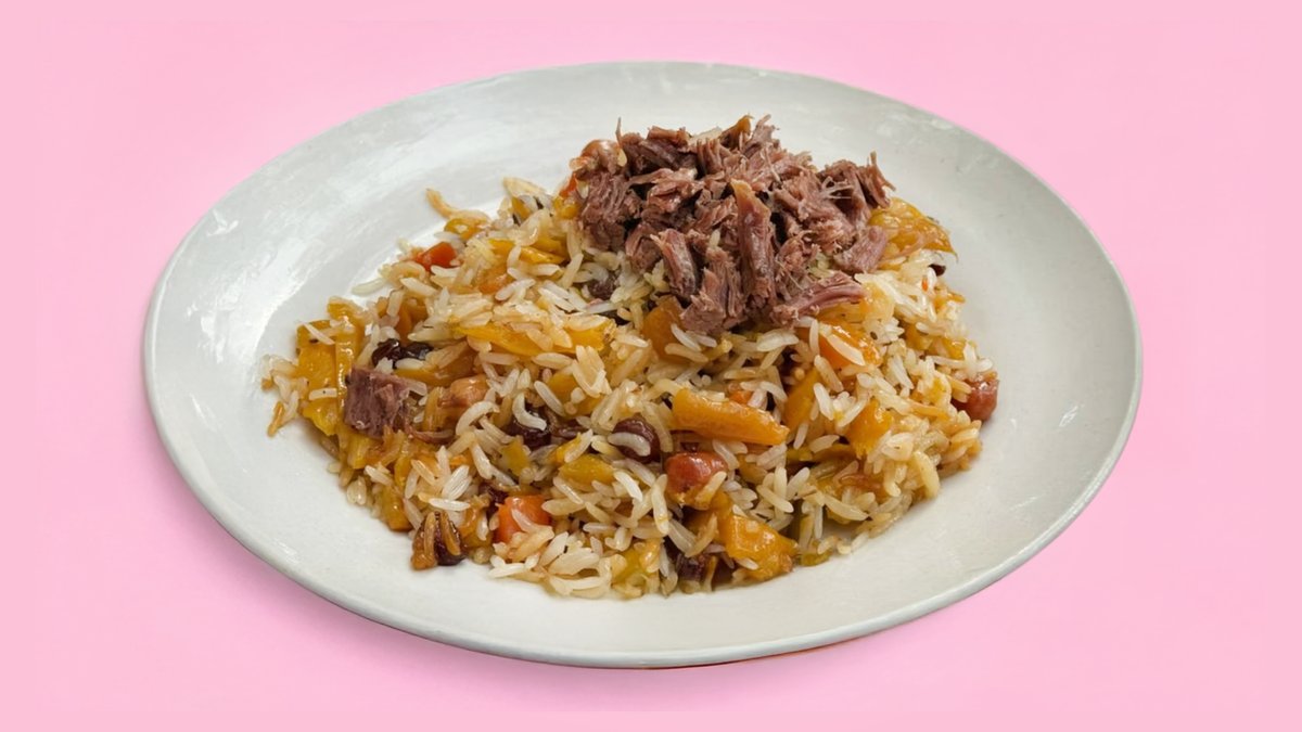 300гр Рис, морковь, мясо говядины, лук, специи