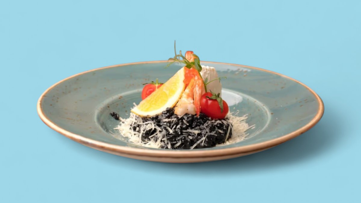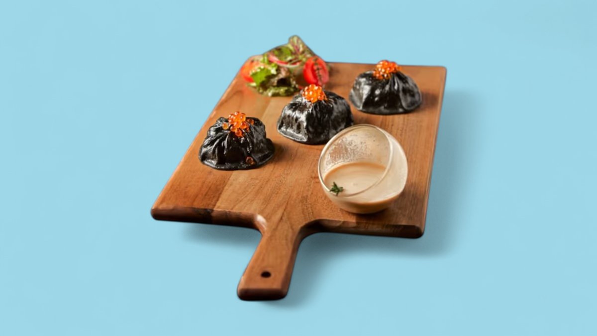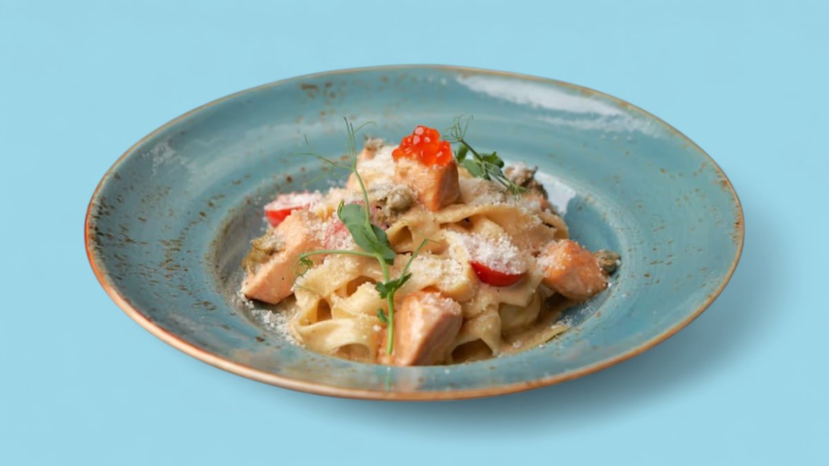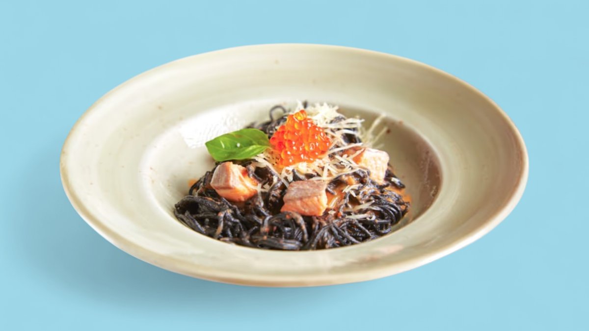 Чёрная паста с лососем и красной икрой