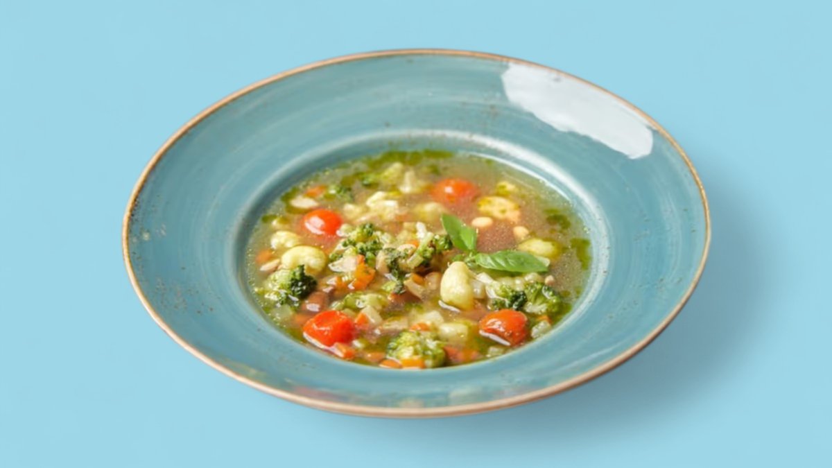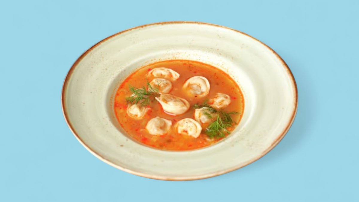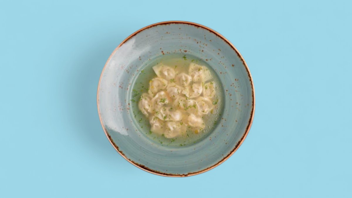 300гр Наваристый овощной бульон, пельмешки