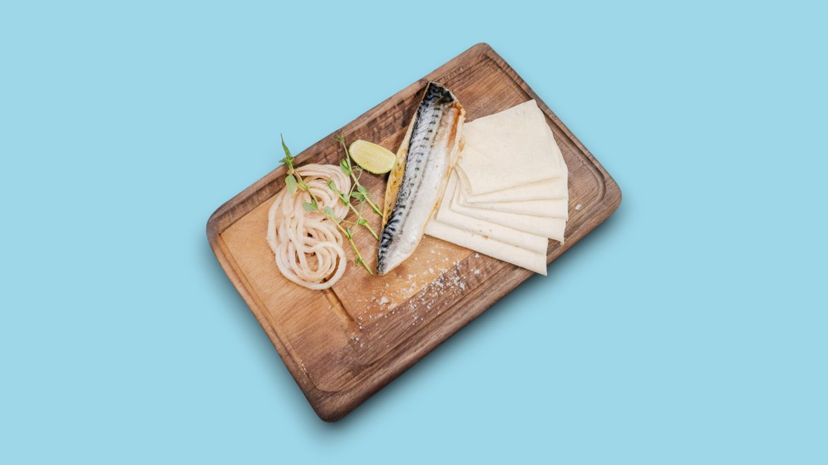 300гр Филе сельди с обжаренным картофелем, ржаными хлебцами и луком шалот