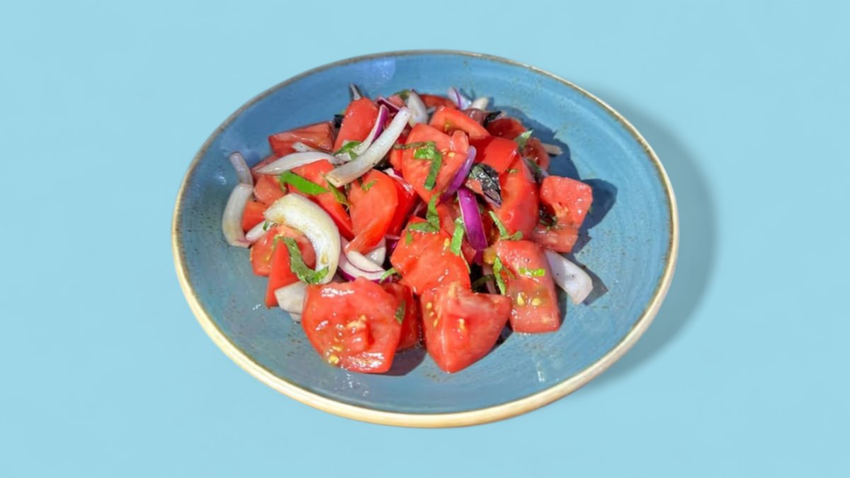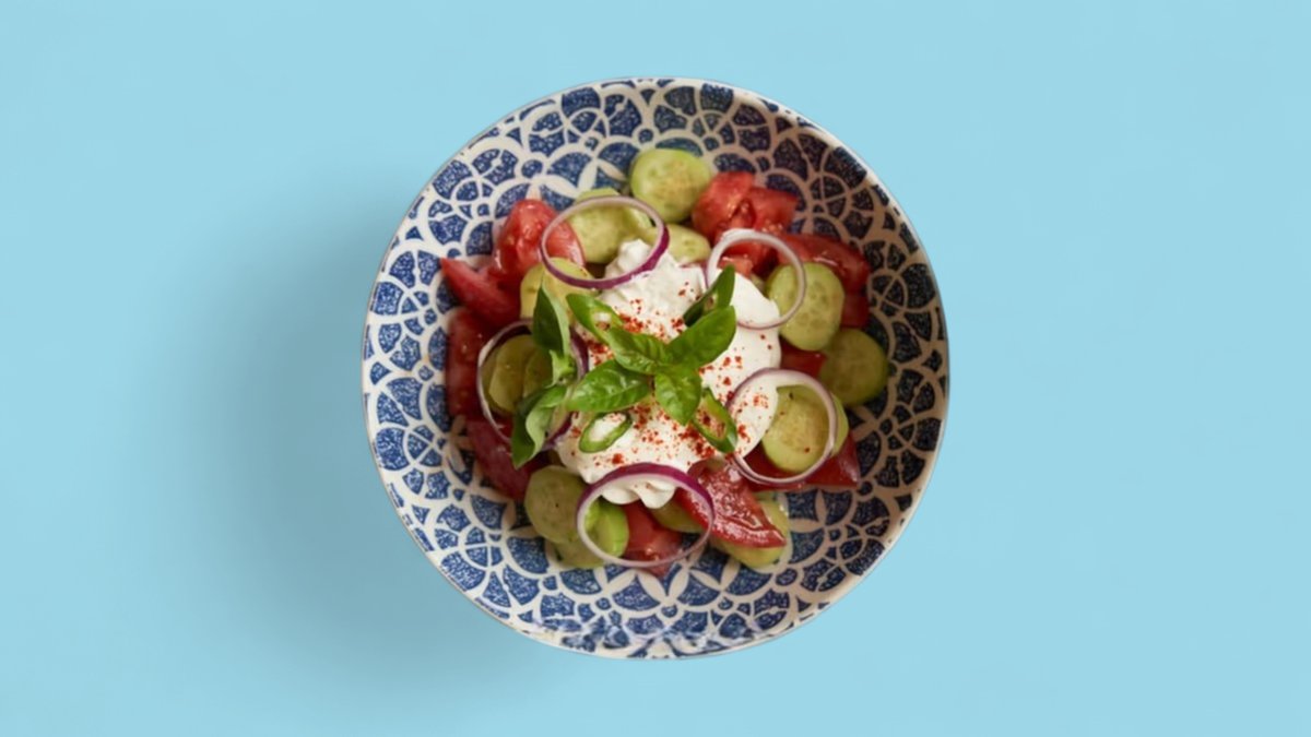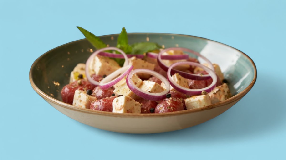300гр Вариация греческого салата с фетаки, луком шалот и маслинами