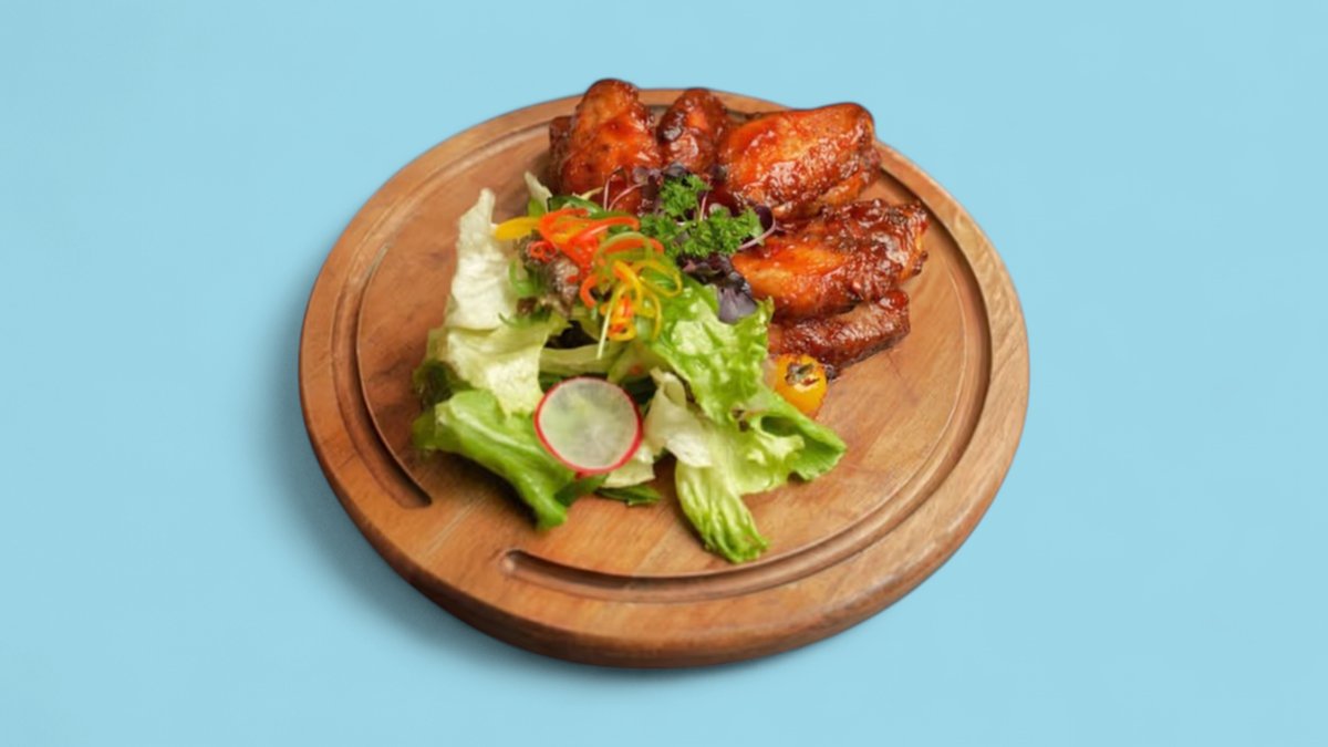 200гр Обжареные крылышки со свежим микс салатом и соусом BBQ