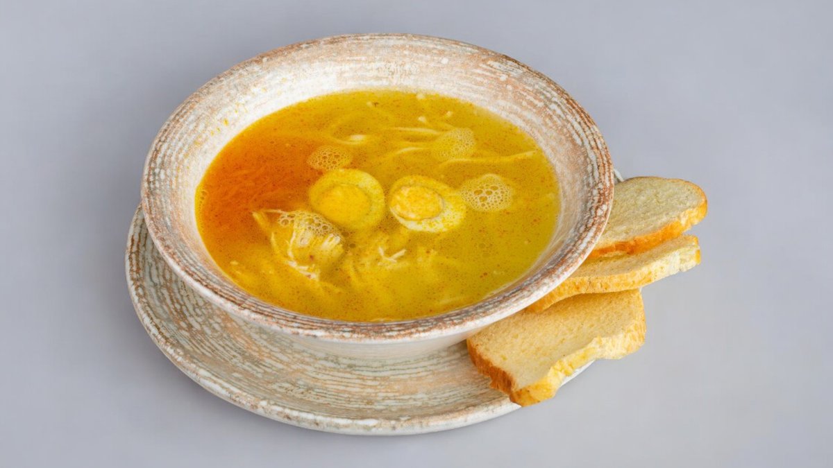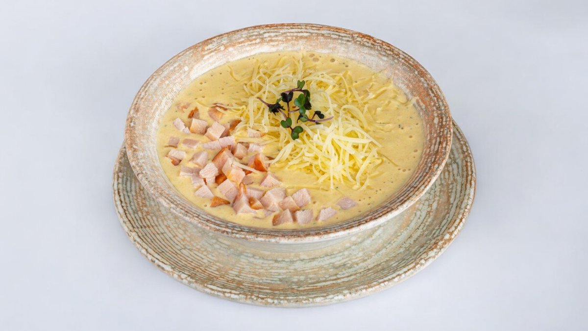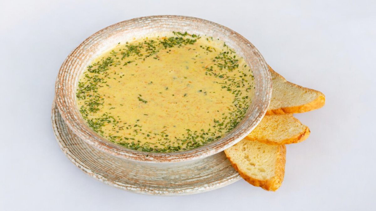 Бульон с соусом песто, морковь, кукуруза, черри, брокколи, цветная капуста, кабачок, триколор, пармеза