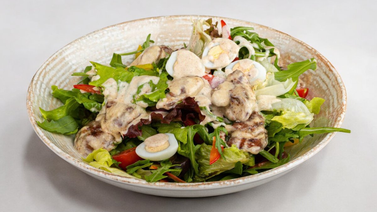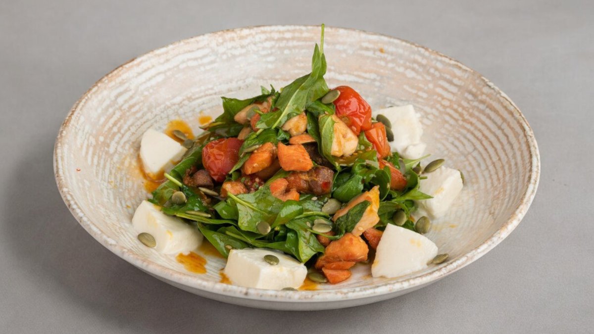 250г Куриная грудка, грибы, сливки, микс салат, сыр гауда, шпинатный хлеб